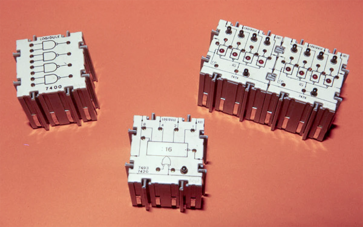 En 1974, tout le monde à l’EPFL était convaincu que les Logidules, développés par Jean-Daniel Nicoud depuis 1968, étaient une aide pédagogique fantastique. Un ensemble de Logidules a été construit pour le laboratoire des étudiants en 1974.